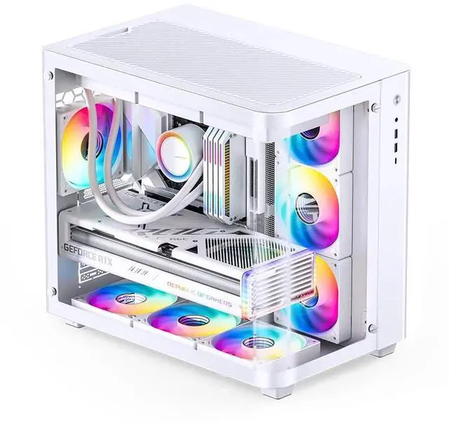 Experience exceptional performance and modern design with the TWELF TECHNOLOGY & DESIGN Gaming Desktop PC. This premium system is expertly crafted for gaming enthusiasts and professionals seeking reliability and style. Housed in a striking white curved glass case, the desktop not only offers a visually captivating appearance but also enhances durability and airflow for optimal component cooling. The elegant glass panel provides a clear view of internal hardware, allowing for easy monitoring and showcasing of high-end components. Ideal for those who value both aesthetics and functionality, this gaming desktop is engineered to deliver a superior computing experience for demanding applications and immersive gameplay.