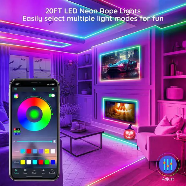 20FT RGB Neon Rope Lights - Indoor/Outdoor LED Lights
