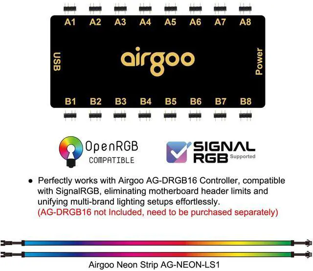 Airgoo NEON Addressable RGB PC LED Strip, 15.75 x 0.55 x 0.28 inches diffused silicon rubber tube, for 5V 3-pin argb header, come with magnetic brackets, upgraded blister packaging