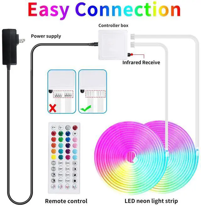 | Included Components | 2*50ft LED Neon strip Lights, 1*24V2A Power Supply, 90* Snap 90* Screws, 1* Controller, 1* Remote Control |