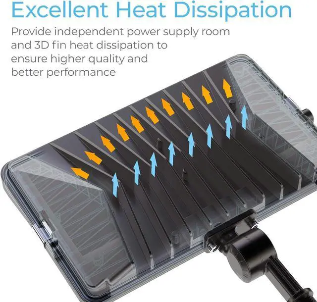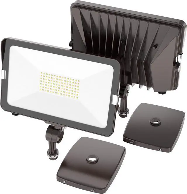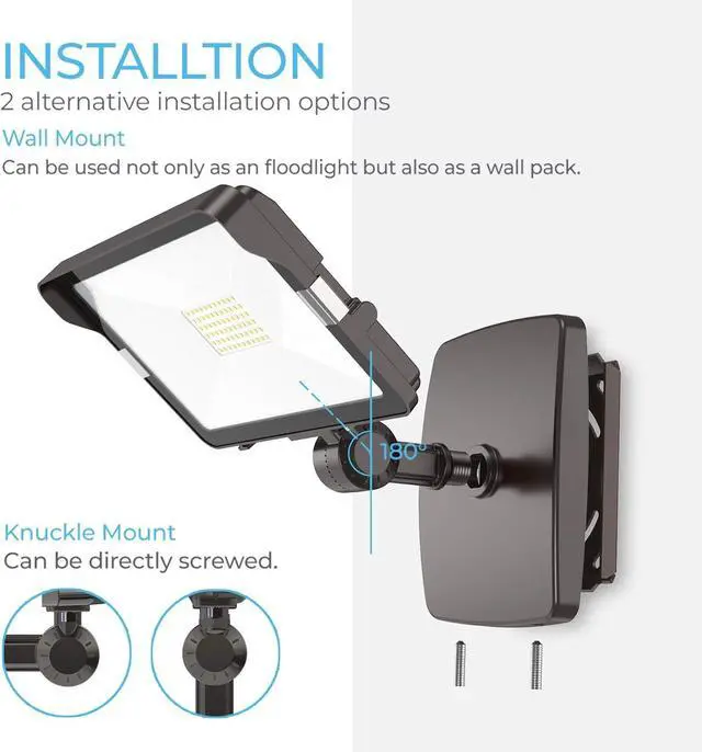 Flexible Mounting Options: The Hyperlite LED outdoor flood lights offer multiple mounting options, including knuckle and wall mount. This allows for easy installation on the ground or on the wall, making it versatile for various applications. They also include bases and screws for added versatility.