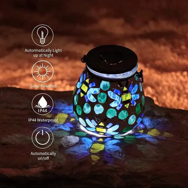 DECORATIVE SOLAR LIGHT- Mosaic Solar Lanterns is a great ideal decor for home, garden decoration and an adornment for a table and bookshelf, it' s a perfect Christmas gift or birthday gift for your friends and families