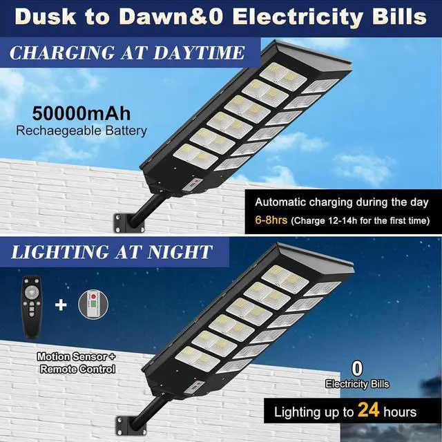 No Electricity BillThese outdoor solar lights automatically turn on at night and off during the day to charge. With highly efficient solar panels, you won' t incur any electricity costs. The large-capacity battery can operate continuously for 24 hours on a full charge, and in low brightness mode, it lasts around 36 hours, providing a service life of up to 80, 000 hours.