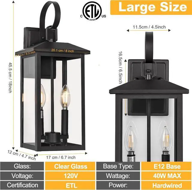 Large Size & Versatile Application: Our exterior lighting fixture stands at 18 inches in height, with a back plate measuring approximately 4.5 inches wide and 6.5 inches tall. Ideal for illuminating and enhancing the aesthetic appeal of your home' s outdoor spaces, please verify the size of the patio wall-mounted light and the type of bulb its requires