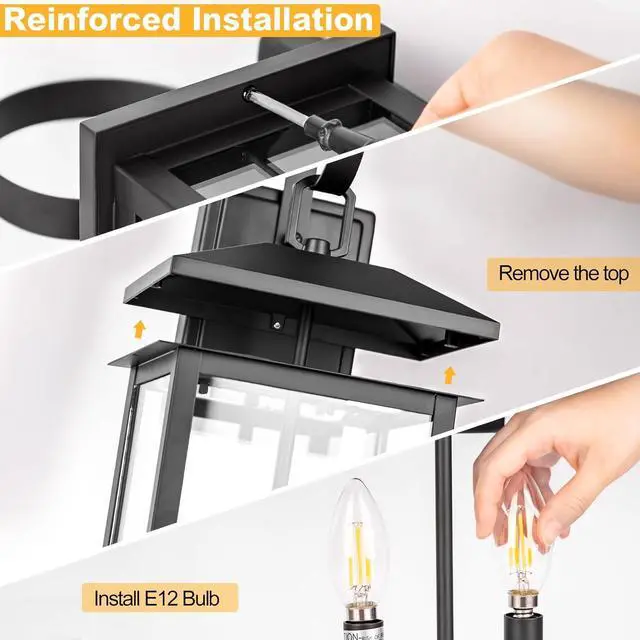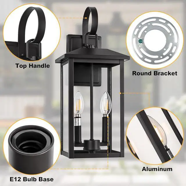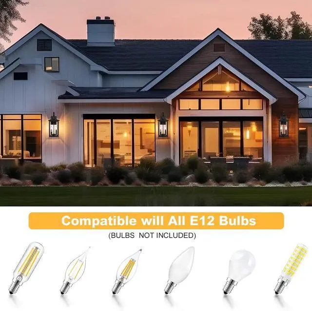 E12 Base Socket & Versatile Application: Compatible with 40W max E12-based bulbs (bulb not included), including LED, CFL, incandescent, and halogen bulbs. our outdoor entry light fixture is suitable for various locations such as porches, front doors, garages, entryways, balconies, and gardens