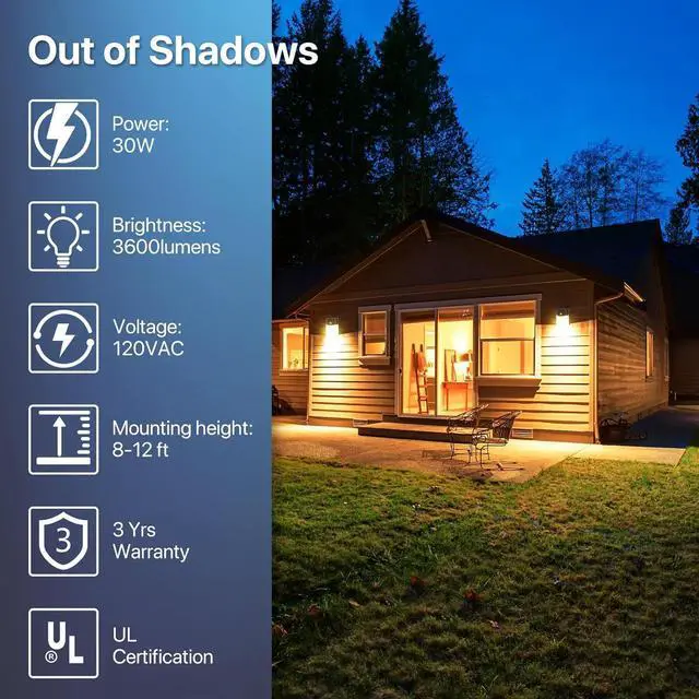 Super Bright - Led wall pack 30W provide 3600Lumens with warm lighting 3000K daylight. Commercial and ideal led wall packs outside lighting for House, Garage, Door, Yard, Porch, Home, Driveway, Shop, Store, Barn, Patio, Church, Street.