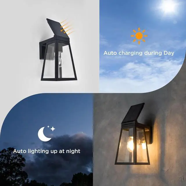 Dusk to Dawn Sensor With Dusk to Dawn Sensor, the wall lantern is programmed to automatically turns on at dusk or in darkness and turn off at dawn. Since the wall lantern is solar powered, it will automatically charge at daytime when light is turned off which enable save energy and free hands.