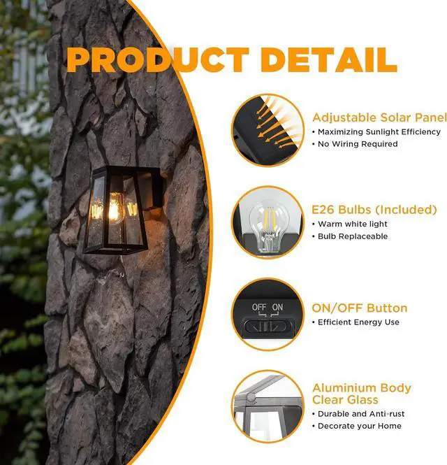 Outdoor Weather ResistantThis solar light is applied with durable die-casting aluminum construction, which is sturdy and anti-rust. With IP65 waterproof rating, the outdoor lighting can ensure working properly no matter rain, snow, heat or cold environment.