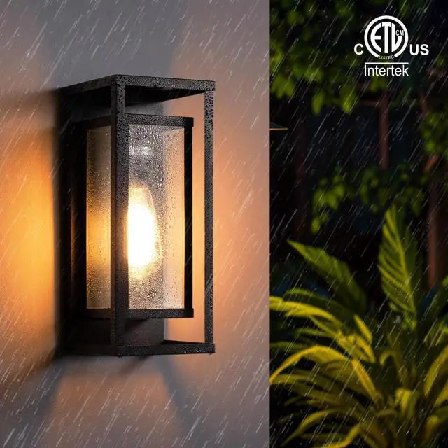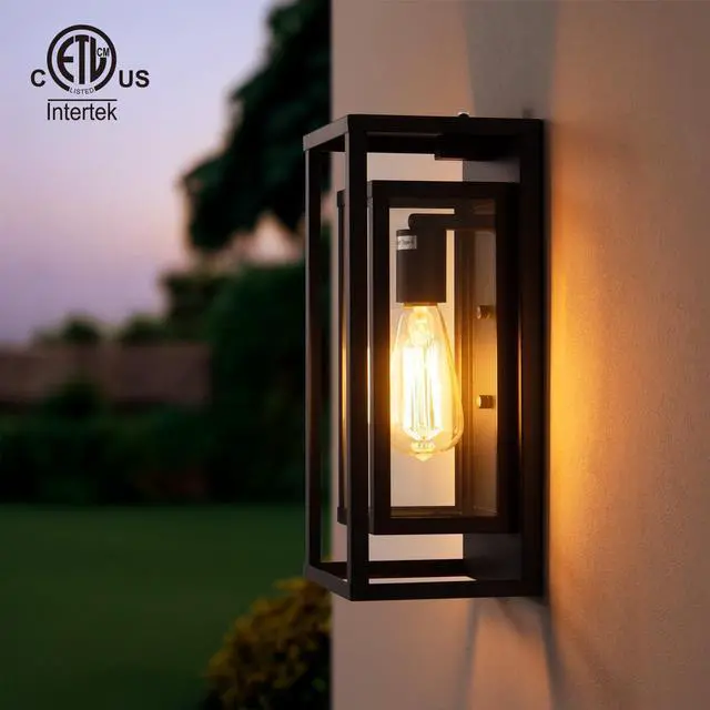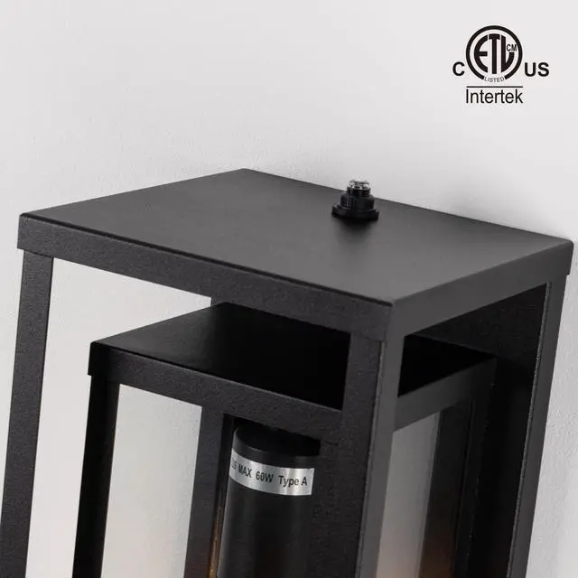 Matte black finish and clear glass panels maximize the vintage character of this wall sconce.