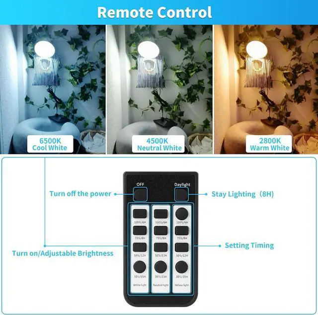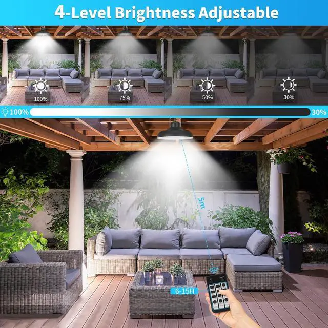 Upgraded 4 Control ModeRemote control control the light on/offRemote control can force the solar shed light light on in daytime. Dusk to Dawn light modes3 kinds of light colors (warm white, cold white, neutral white) can be switched freely, and 4 kinds of light brightness and timing setting(100%/6H-75%/8H-50%/12H-30%/15H)to choose.