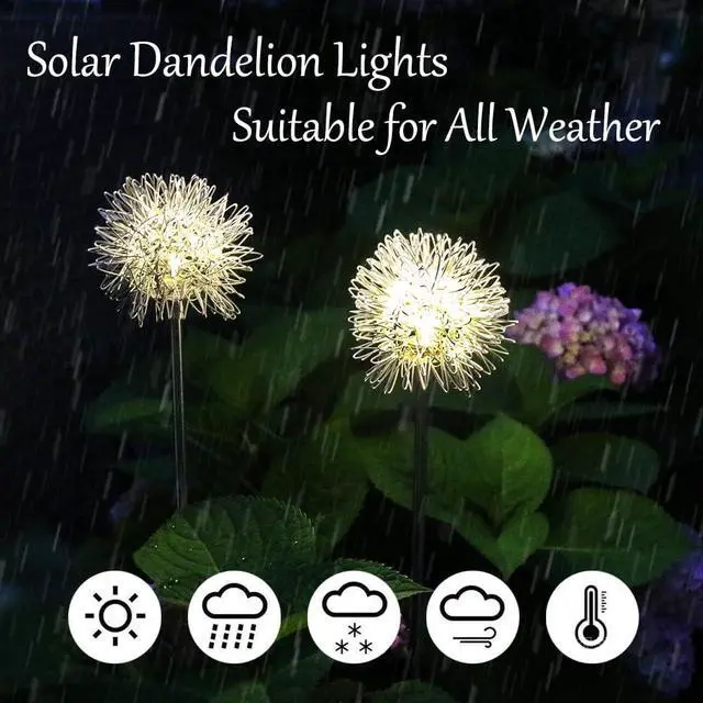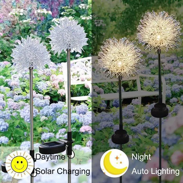 Novel Garden Decor: Dandelion shell is made of silver aluminum wire, with warm white color light LED beads. Solar dandelion light will not rust or fade and not need watering. It not only creates gorgeous lighting in your yard at night but also adds a splash of colour to your garden during the day