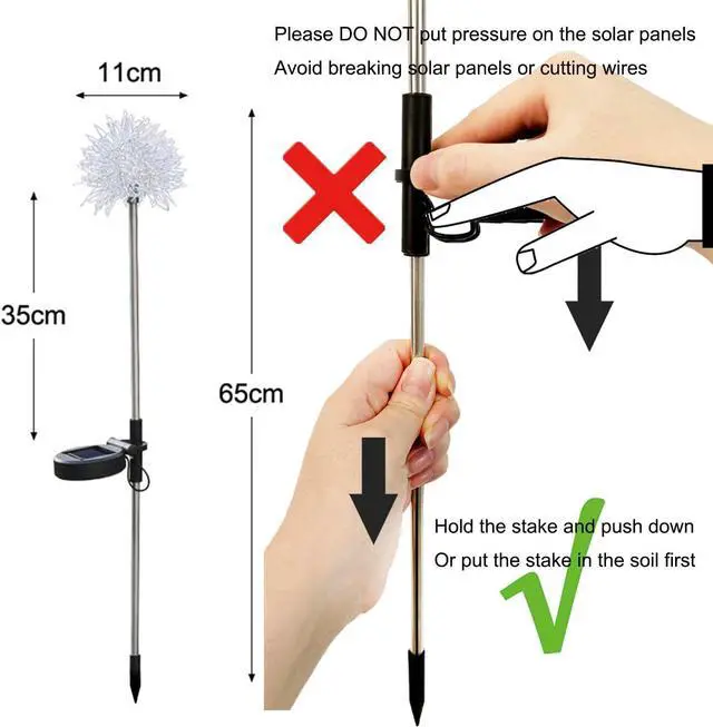 Safety & Waterproof: Our solar dandelion lights will not overheat after prolonged use. There are safe for children and pets to touch and can also be placed next to plants. Low voltage lamp bead and IP65 Waterproof solar panel, makes these dandelion lights long lasting and durable, they work well even in rainy and snowy day