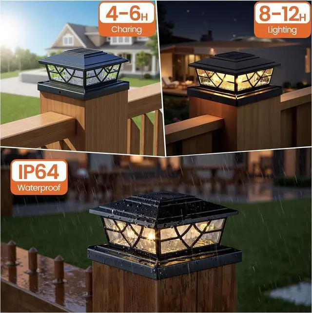 Most-weather Resistance: Built with IP64 waterproof rating, these deck post lights solar powered withstand rain, snow, and harsh weather conditions. The solar fence post lights are Ideal for almost year-round outdoor use