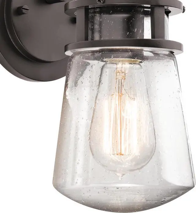 The 1 light Lyndon wall light in Architectural Bronze finish and Clear Seeded Glass uses a 75 watt (max) bulb equivalent and it can accomodate a Vintage Filament Bulb (4071CLR)