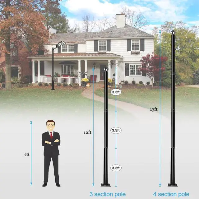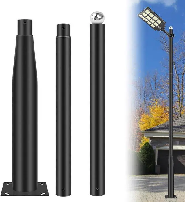 3.2FT up to 10FT - The split assembly street light pole consisting of 3 sections, multiple height adjustable. Split rod design for easy instllation, high quality Q235 steel metal material with excellent toughness