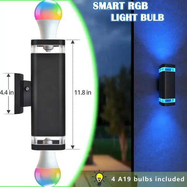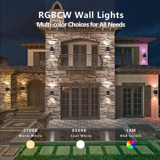 Vibrant RGBCW Color Changing: This WiFi LED outdoor sconce lighting Choose from millions of colors and 47 modes to match any mood or event. Whether you need bright whites for daily use, warm hues for relaxation, or vibrant RGB colors for festive holiday like Christmas and Halloween, these exterior lights offer endless possibilities for transforming your front porch, doorway, theater, lanai or garage door.