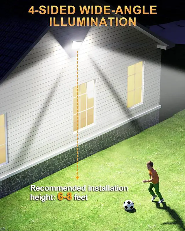 WIDE-ANGLE ILLUMINATION: This solar motin light adopts an innovative 4-sided LED panel design, so that all 4 sides can be illuminated at the same time. Wider range of illumination compared to traditional solar outdoor lights