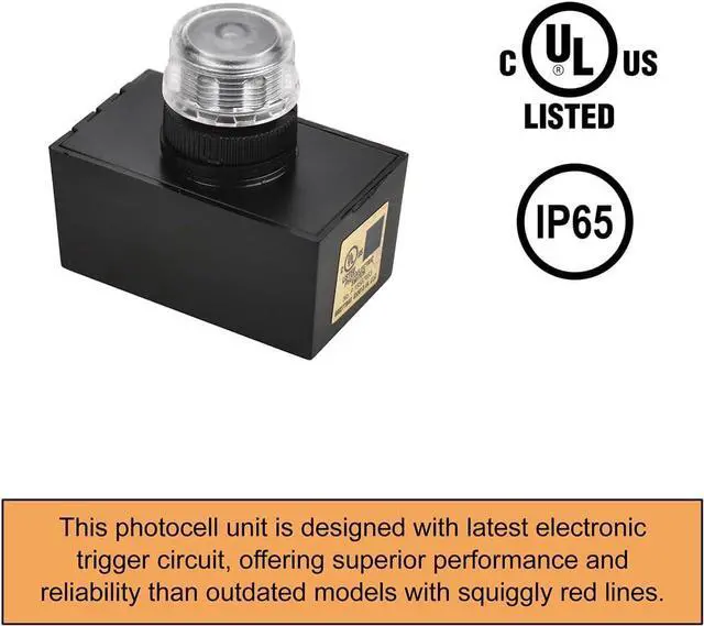 | UL LISTED | Photocell sensor is UL listed to ensure quality to meet standards for all commercial and residential light fixtures.