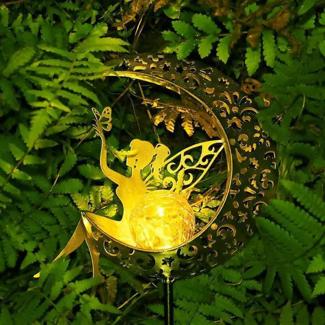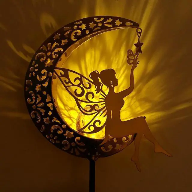 Unique Design A dreamy fairy tale decoration, with a butterfly fairy sitting on the moon caressing the pendant. During the day, it serves as a decorative garden post and outdoor statue, adding fun to your garden. At night, romantic and warm fairy tale lights create a dreamy fairy tale atmosphere, turning your garden, courtyard, and flower bushes into a dreamy kingdom.