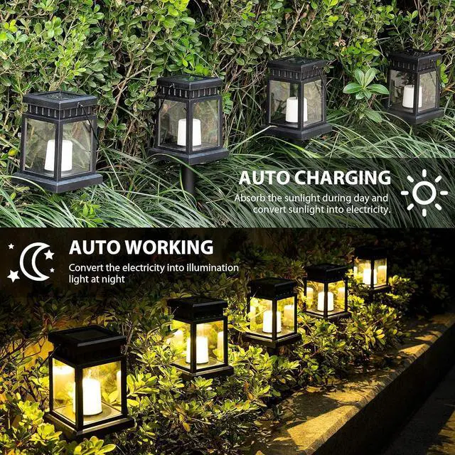 Solar Lanterns Outdoor: These LED solar lantern lights replicate the effect of candle lights for mood lighting, warm white light adds a romantic and warm atmosphere to the patio, garden, yard, and balcony.