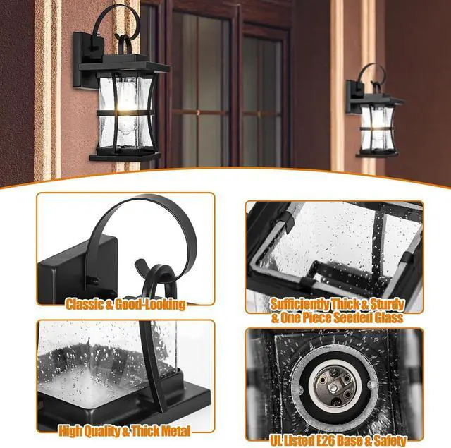 Durability Meets QualityWhat makes our dusk-to-dawn outdoor sconce stand out? Its the premium materials. The combination of sturdy, solid metal and a reinforced glass that' s four times harder than regular options ensures these outside lights for house dont just shine. With a resistance to rust and a sturdy seeded glass that' s built to resist water and moisture, youre investing in dependability and brilliance.
