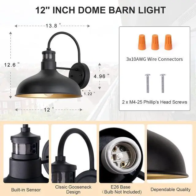 Easy to Install: Outdoor black barn light comes with all needed mounting hardware for quick and easy installation in a few min.