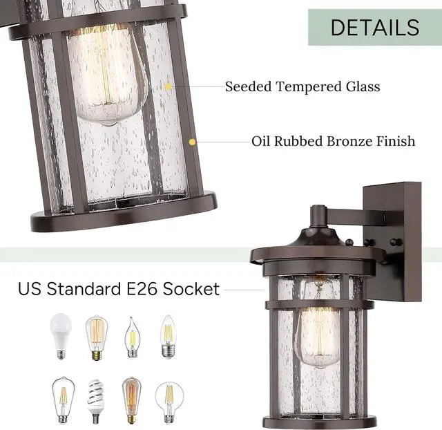 Sturdy Material-- Featuring oil-rubbed bronze finish and seeded glass, this exterior wall lighting is compatible with various home decor styles, including modern and farmhouse.