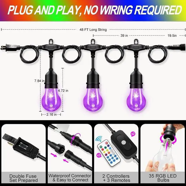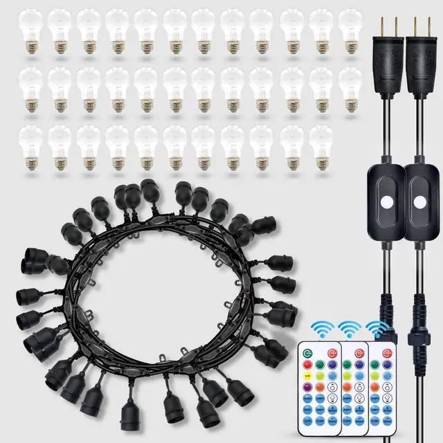 Dimmer Compatible&Perfect Atmosphere: Adopting the most advanced LED chip technology, this RGB lights string glow in TRUE colorful light through clear bulbs. It will create the best mood and aesthetic light show for any patio, deck, backyard, porch, cafe, party, holidays and more.