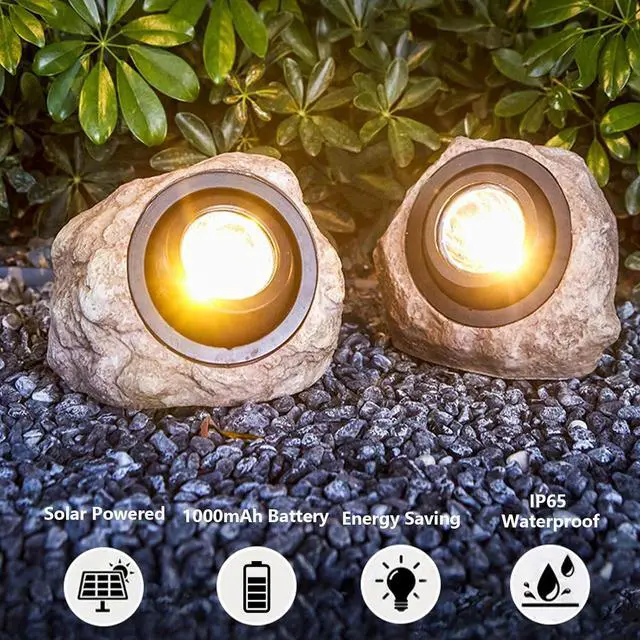 Two Lighting ModesThe rock imitation solar pathway lights have two lighting modes: warm white light 3000Kand cold light5000K. These lights are suitable for garden, pathway, patio, walkway, yard and more.