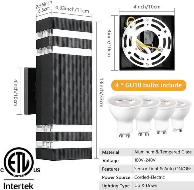 UP AND DOWN LIGHTING: Featuring 2 GU10 7W LED bulbs (included), emitting a warm 3000K glow, these outdoor wall lights exterior not only brighten your outdoor areas but also create a cozy ambiance. The perfect fit for your contemporary home.