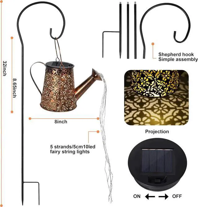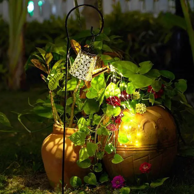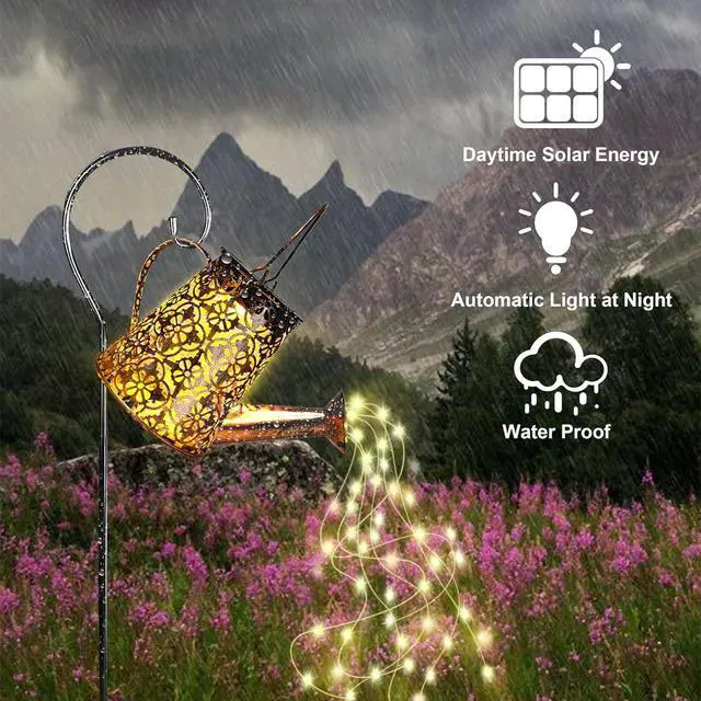 -: These Snowflake Kettle Lights use advanced solar technology. Just absorb sunlight during the day to enjoy 8-10 hours of warm, automatic illumination at night. No wiring or frequent charging neededthey bring energy-efficient, starry " flowing water" magic to your garden or patio.