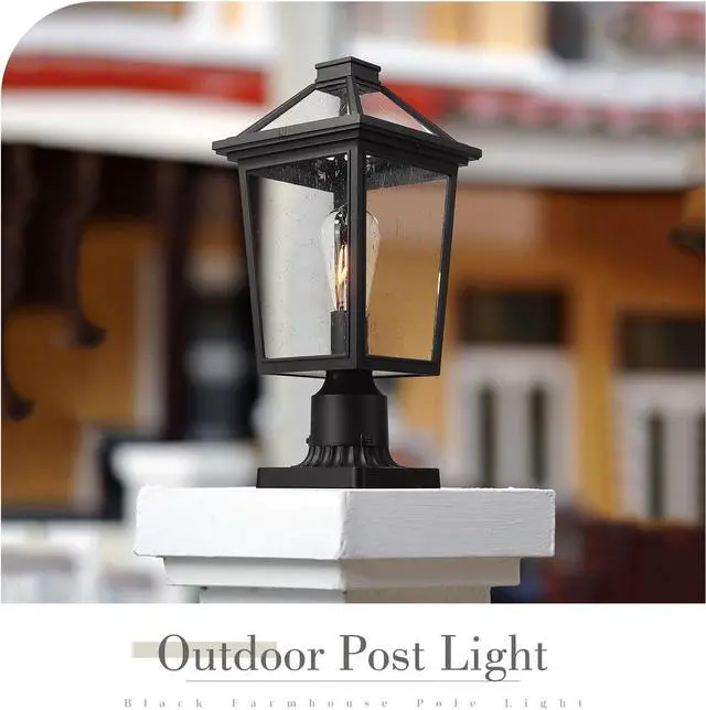MODERN DESIGN & WEATHER RESISTANCE: Featuring a modern lantern design, this outdoor light post fixture is made of die-cast aluminum in a black finish with a seeded glass shade. Waterproof and anti-rust, it was durable while adding a unique atmosphere to your house.