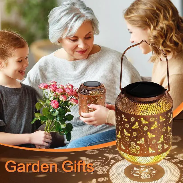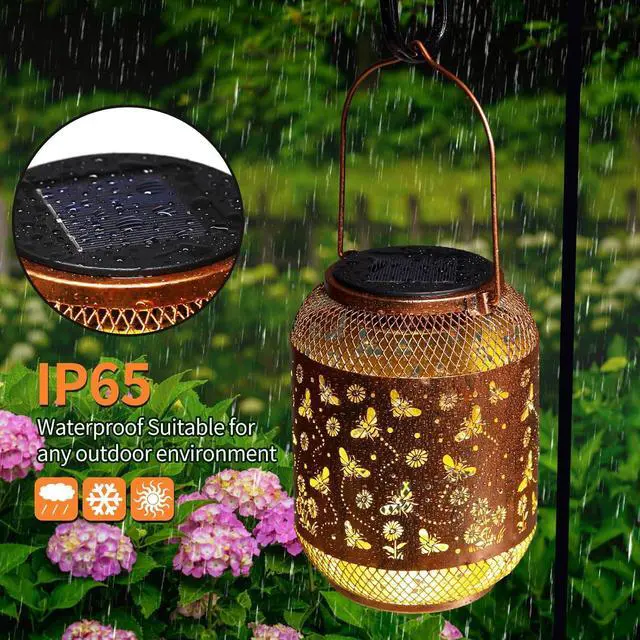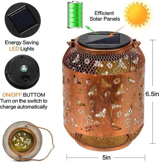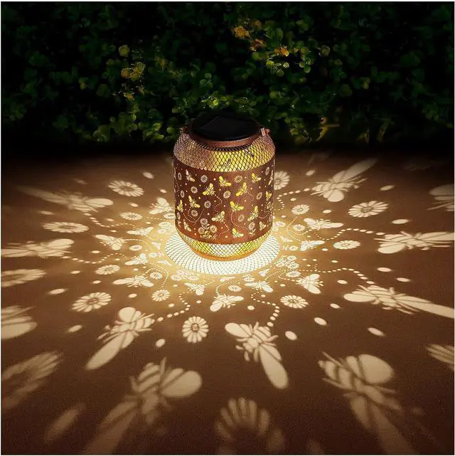 Graceful Decorative Design - The retro appearance, with gold copper color and hollow out metal veneer, the solar outdoor lanterns casts bright and warm light in darkness, accompanied by gorgeous and graceful bee patterns, adding a beautiful atmosphere to the surrounding environment.