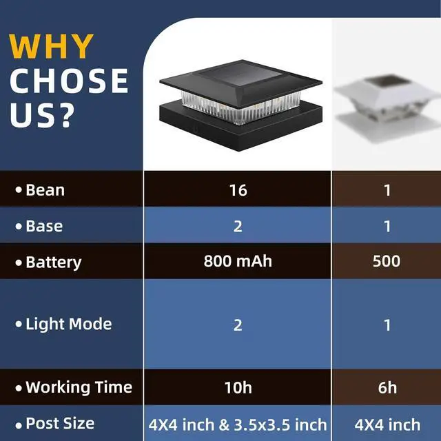 Warm & White Lighting Options: Featuring dual modes of warm and white light, the 4x4 post solar lights are equipped with 16 high-brightness LED beads. With a warm or white light at dusk to illuminate gardens, patios, fences, and courtyards, creating a cozy nighttime atmosphere perfect for relaxation and entertainment.