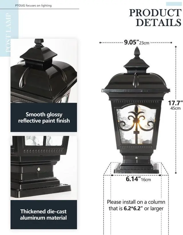 VINTAGE CRAFTThe retro industrial style traditional classic outdoor unique waterproof pillar post lantern, elegant design creates a cozy and romantic atmosphere, profession decorative outdoor lighting. light source aesthetic, enhance modern or older buildings charm.