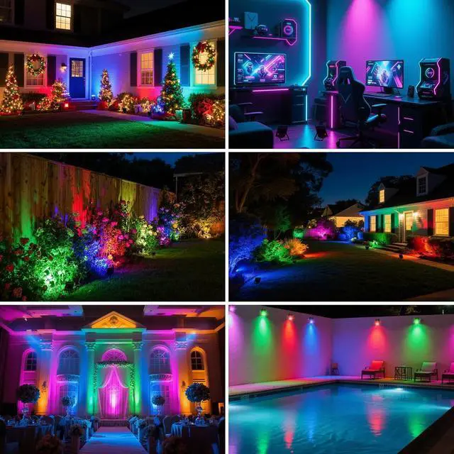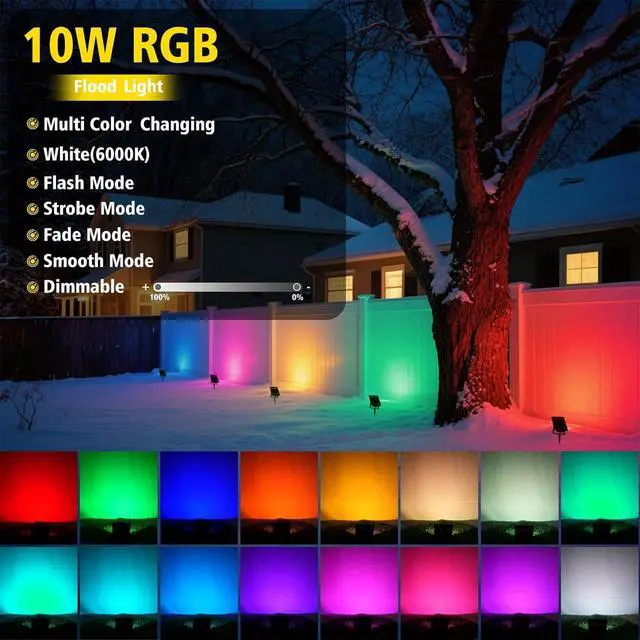 Widely UsedThis 10W RGB flood lights suits for both indoor or outdoor use, perfect choice to place on garden, yard, patio, street, building, landscape, tree, stage, bar, and Halloween, Christmas, or Festive occasions.