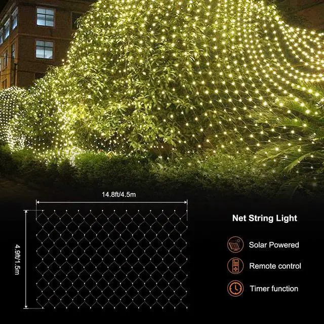 Package Include- 1x 15*5ft LED Net Lights; 1x Remote Controller; 1x Solar Panel; 1x Gift Box; 1x Manual; 12-month friendly customer service and 24 hours email response.