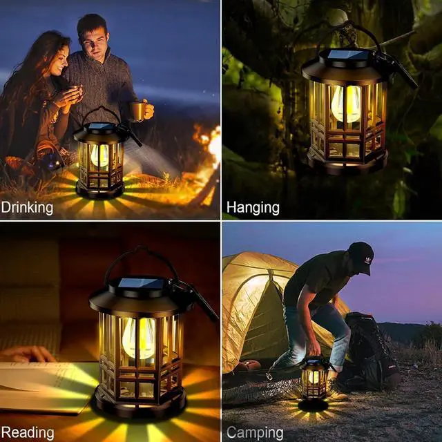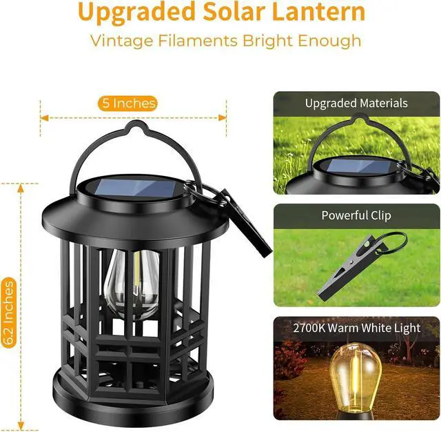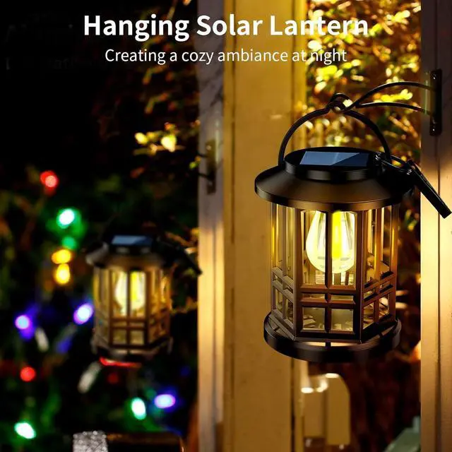 Hanging Solar Lanterns Our solar outdoor lights have a modern and classic design, compact and elegant. The solar outdoor hanging lights use the upgraded 2700K LED warm light beads, creating a cozy ambiance at night!