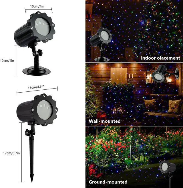 RGB Moving Firefly Effect-- Red, Green, and Blue (RGB) can be combined to 7 different laser colors, and create classic moving firefly effect. The laser light has motion or static mode, can be used indoor or outdoor, perfect for creating a festival atmosphere at Christmas, birthday party decoration