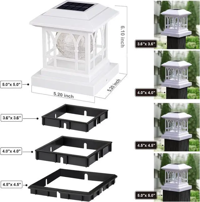 Installation & Customer ServiceSuitable for any standard 3.6 " x 3.6 " /4" x4" / 4.5 " x 4.5 " /5" x5" wooden posts. Pole mounting, easy disassembly, and assembly. The package includes detailed instructions and screws, you can complete the installation on your own in minutes, and no wiring or power is required. If you have any questions about our products, or if there is any damage during transportation, please contact us!