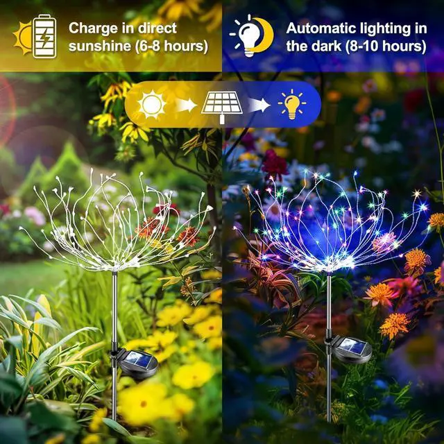 With 2 lighting modes: blinking and constant light, solar-powered fireworks lights for patio garden backyard outdoor decorations, provide illumination to your garden at night