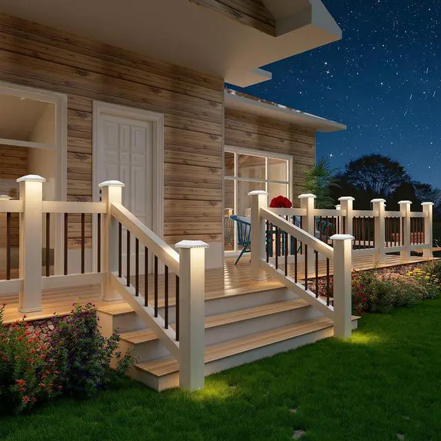 [Focused & Energy-saving] We use a reflective lens on each bead of our solar fence post lights to make the light brighter and more intense. Unlike other post cap lights where all the light goes into the darkness and disappears, this waterproof solar light for deck fence shoots more light downward, illuminating the post, even the ground (when unobstructed). Therefore it is very suitable for installation on stairs, gardens, railings, etc. And it high conversion rate photovoltaic panels can convert solar energy into more electricity, it saves the electricity bill and is more friendly to the environment!