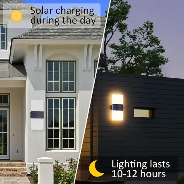 Solar Powered Dusk to Dawn Sensor2000mAh battery, no need to plug, save energy. Solar wall sconce quick charge 6-8 hours (when sunny), working 10-12 hours. Turn on the switch before use. Built-in advanced dusk to dawn sensor, the exterior wall light can be automatically turned on at dusk and off at dawn every night.