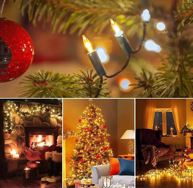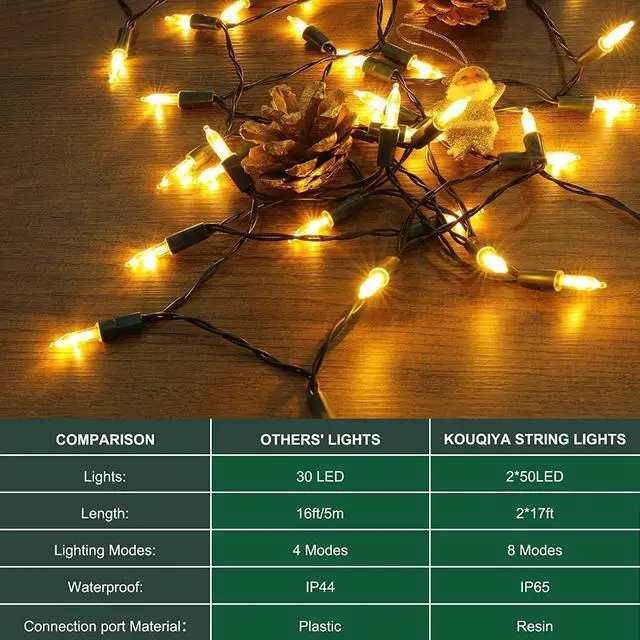 Battery Christmas Lights: 3*AA batteries (Not included) operated, 2 Set of 50 LED Christmas lights, 4 inch bulb spacing with 1ft leading wire. The Christmas lights can create a romantic and warm atmosphere in every your holiday season