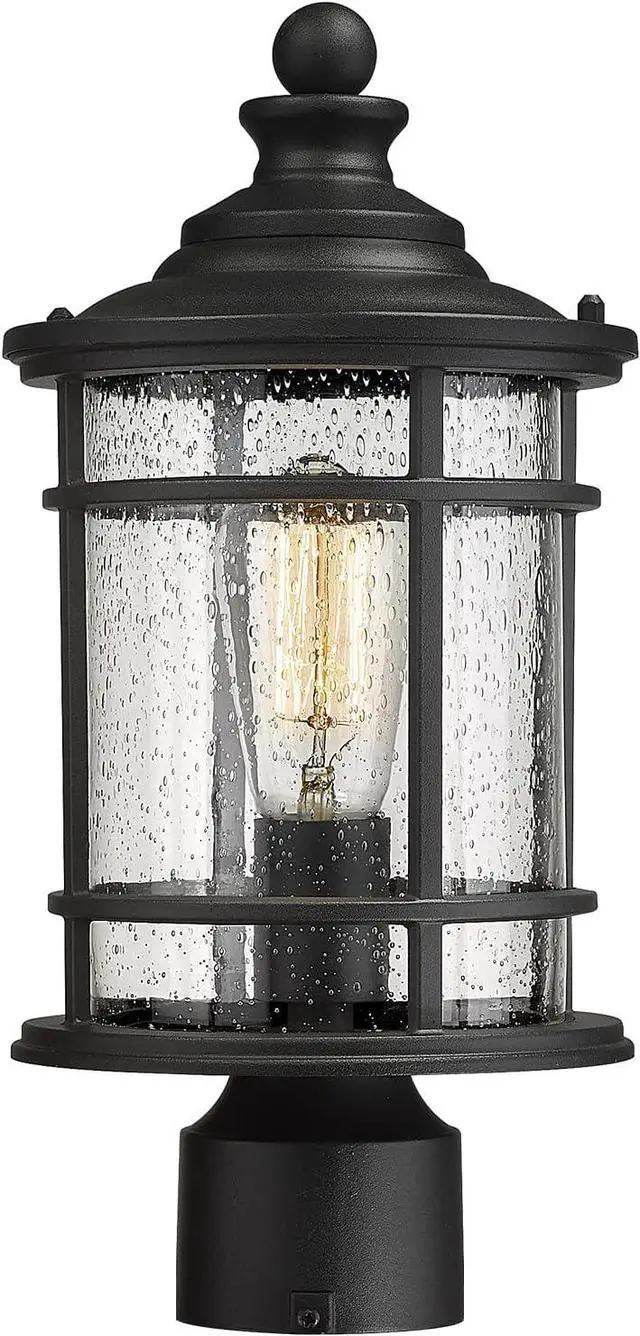 Weather-resistant and rust-resistant, this post lamp features sturdy aluminum construction with seeded glass shade, suitable for wet locations