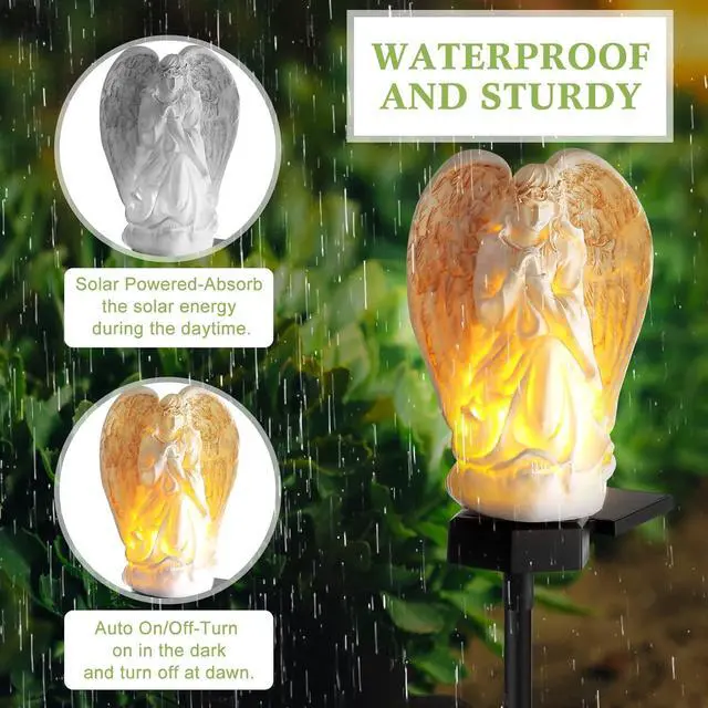 Sturdy: mainly made of quality resin, waterproof, lightweight and strong, with exquisite workmanship and clear texture, making the angel pray decor solar light outdoor stakes look very realistic and beautiful;