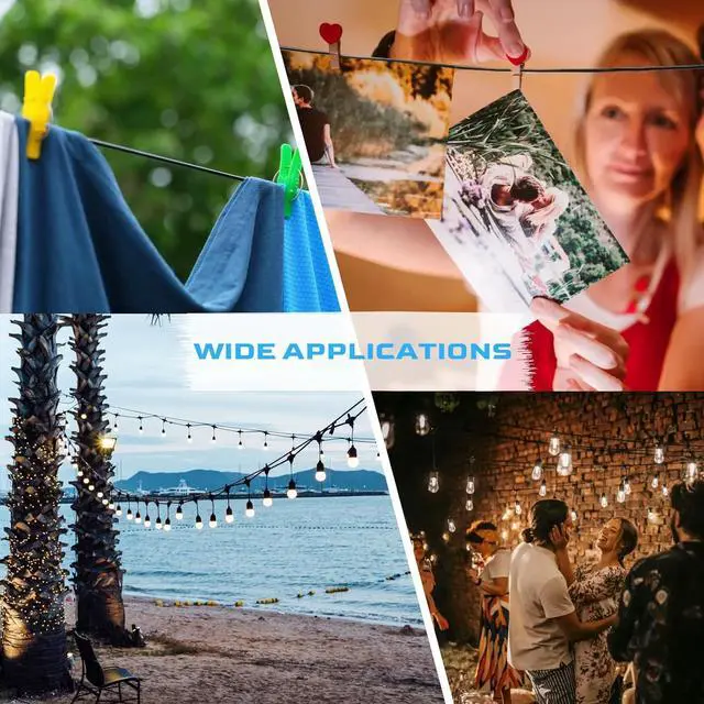 Wide Application-Our guide wire for string lights can be used in multiple ways such as This product is suitable for patio string light kit, string light pole, photo frames, clothes, shade sails. You can shape different lighting suspension types to enhance the visual effect according to different of occasion, indoor or outdoor. Using your imagination, Decoration, create Atmosphere and enjoy the fun of DIY