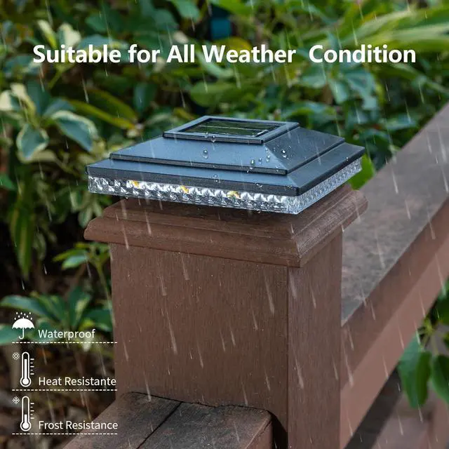 FLEXIBLE -Package includes 3 bases. Fits 4x4inch(actual size is 3.5 x 3.5 inch), 5x5inch(actual size is 4.5 x 4.5 inch) wooden posts, and 4x4 vinyl post. Meets your basic fence decor needs. No need to run electrical wiring. Completely self-contained
