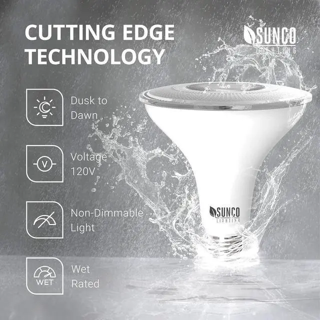 DUSK TO DAWN - Sunco' s PAR38 LED Dusk to Dawn Bulb powers on automatically at sunset. Leave the power on to activate the sensor. The photocell sensor detects light levels to act as an automated night light.