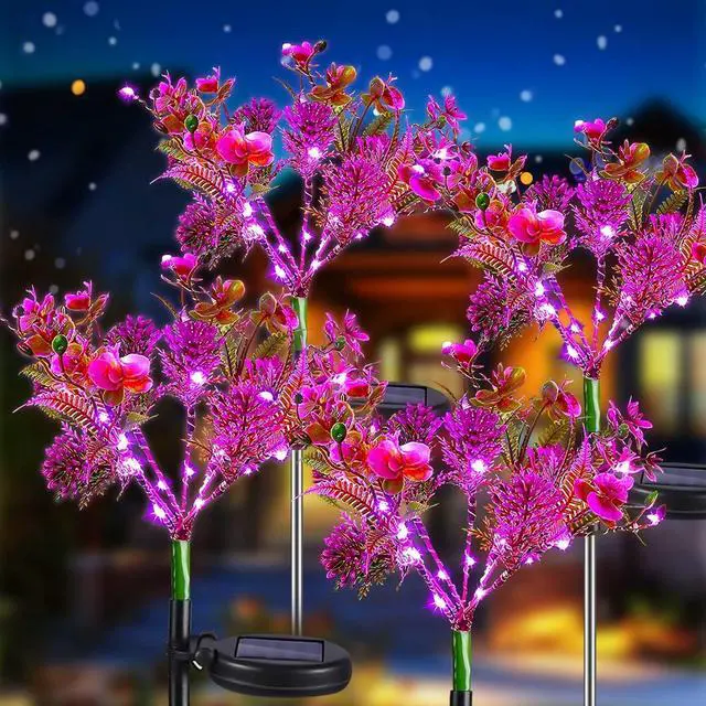 Simulation Phalaenopsis Solar Flower Lights Design: Neporal phalaenopsis solar flowers outdoor waterproof resemble butterflies fluttering among flowers and plants, with purple buds resembling phalaenopsis orchids waiting to bloom. Crafted from high-quality PVC material, their exquisite design gives them a lifelike appearance. They are fade-resistant, saving you the cost of buying real flowers. This Halloween, let their haunting purple glow add an eerie elegance to your spooky outdoor decor.